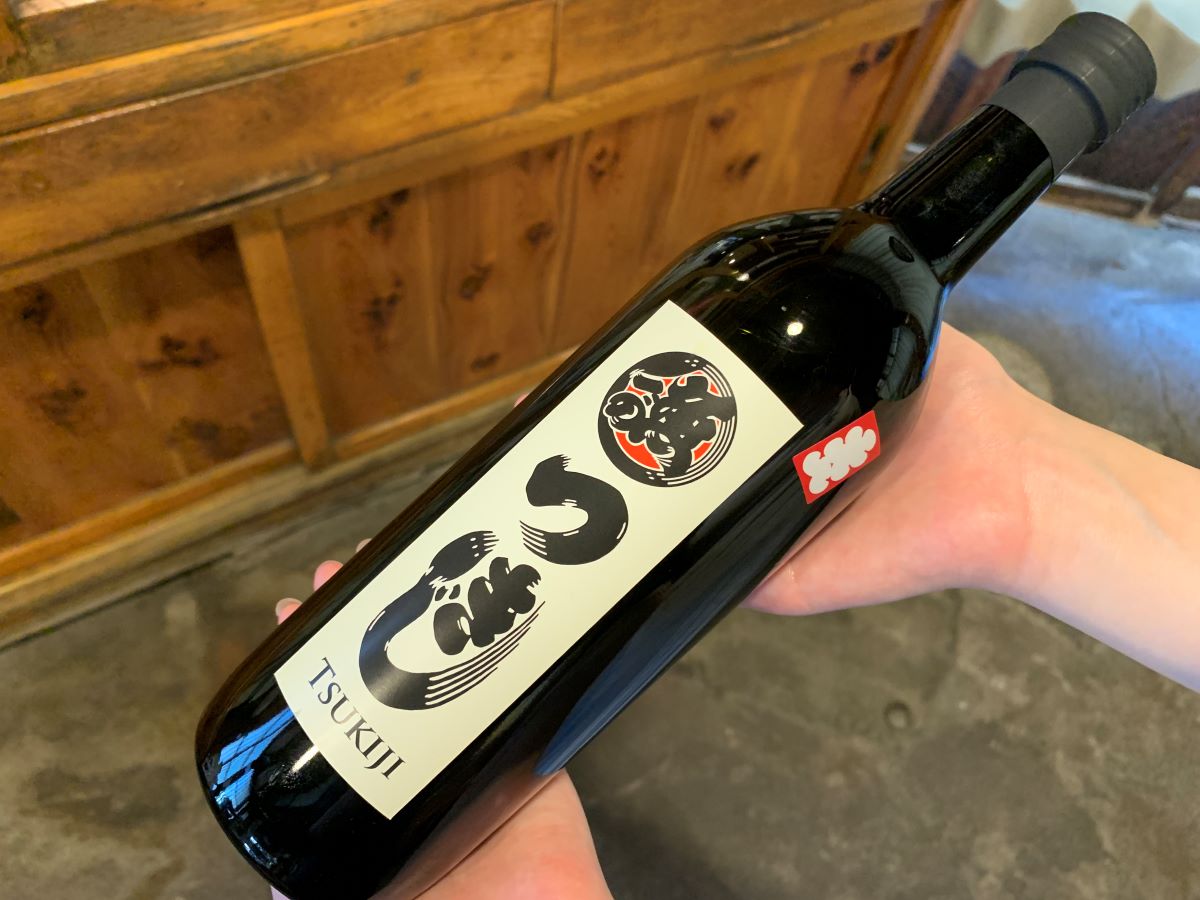 瓶のラベルには築地で活躍する職人が描かれた江戸文字です。